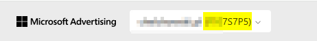 Na górze, obok nazwy konta znajduje się identyfikator konta Microsoft Advertising (8 znaków).